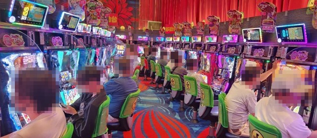 沖スロにドル箱別積みが乱立