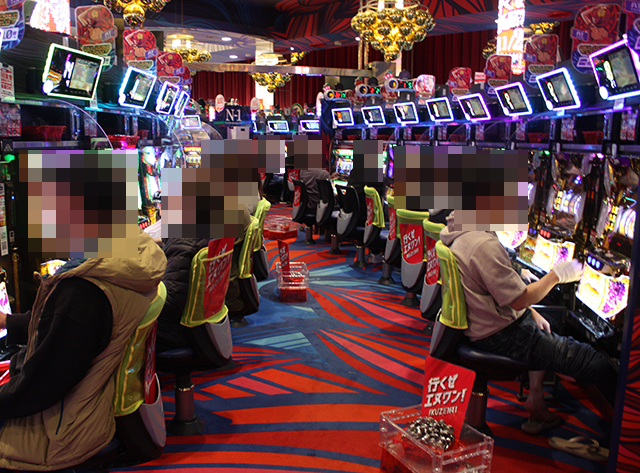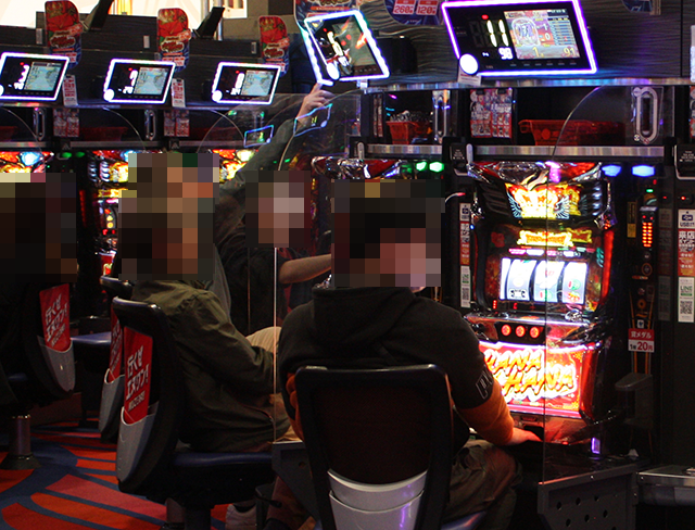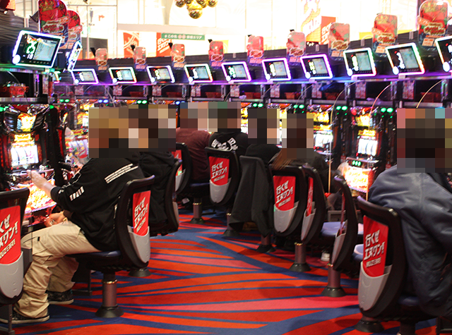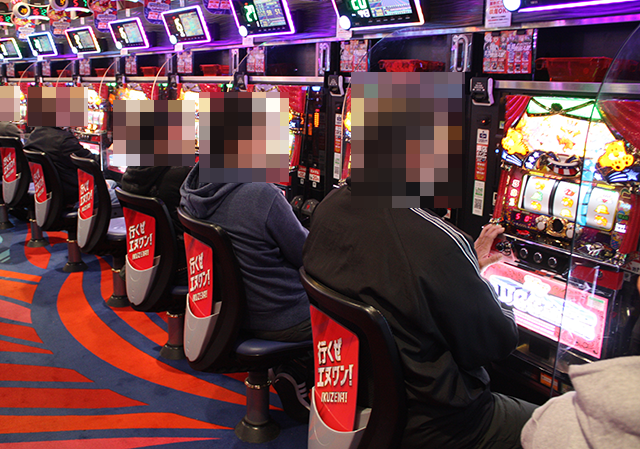 あちこちに笑顔で遊技をおこなっているプレイヤーがいるなかで、パチスロコーナーに注目をした。