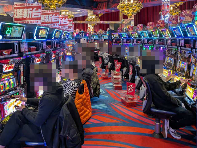 取材時に、7箱以上や5箱以上の持ち玉を使い、うれしそうに遊技をおこなう姿があった。