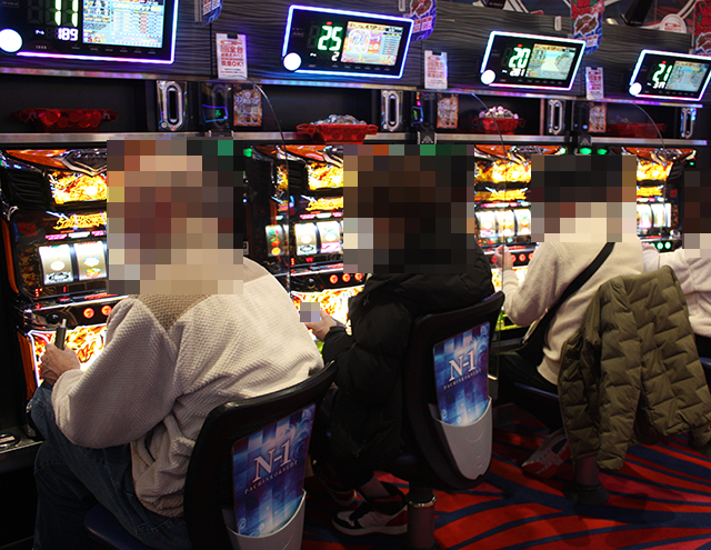 3月8日のホールには、幅広い年代のプレイヤーが集まっており、楽しそうに遊技をおこなっていた。