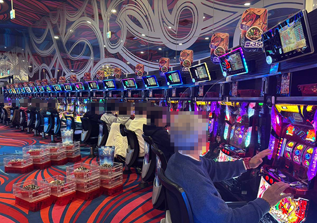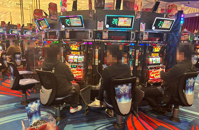 7箱以上や6箱以上の持ち玉となっており、笑顔で遊技を楽しむ様子もみられた。