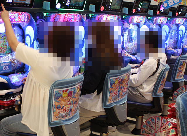 大箱4箱以上の持ち玉を使い、笑顔で遊技をおこなっている姿があった。