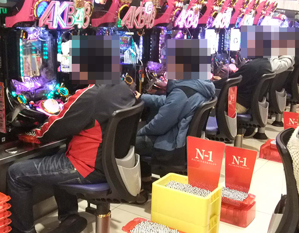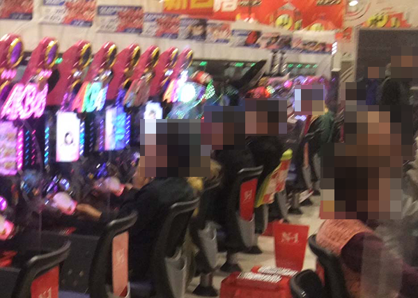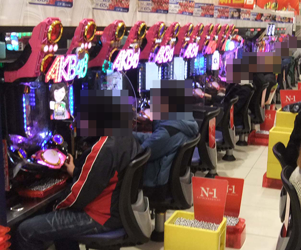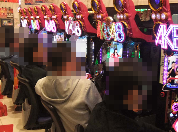 いくつものシマがにぎわうなかでも、とくに目をひかれた場所がある。機種の性能を最大限まで引き出しているといったプレイヤーがみられた「CRぱちんこ AKB48-3 誇りの丘」だ。