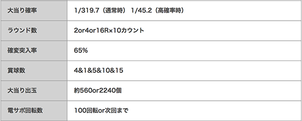 獲得出玉約2240個の大当りとスピード感のある小当りの連鎖が魅力的なスペックだ。