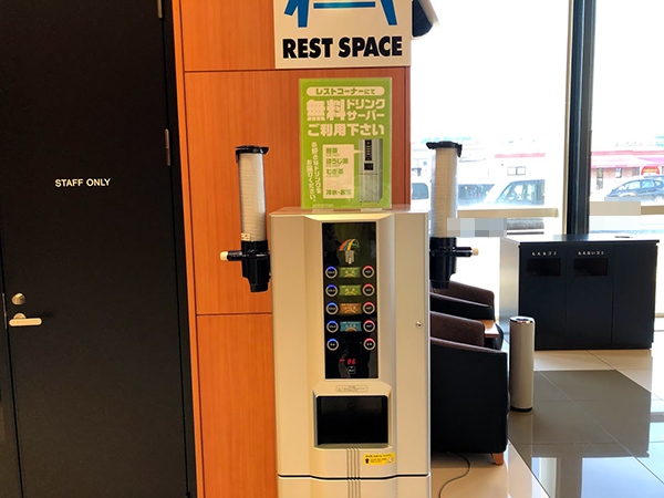 無料で使えるドリンクサーバーがあることも魅力的。あたたかいお茶と冷たいお茶から選べるところも、うれしいポイントといえるじゃろう。