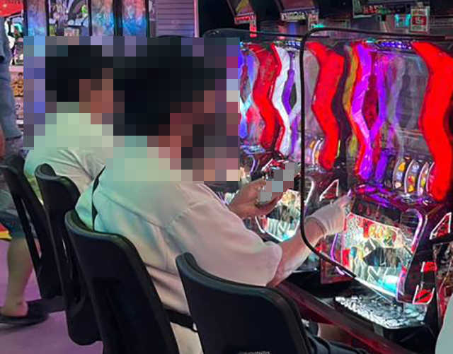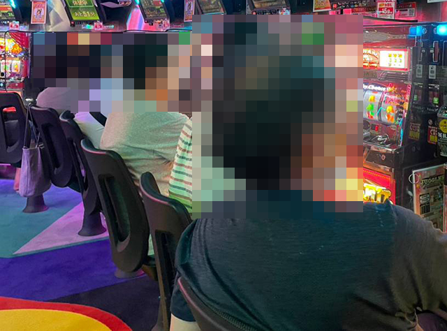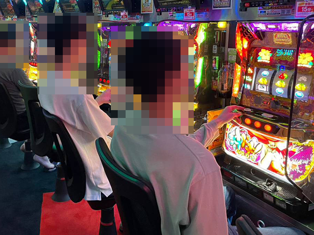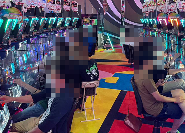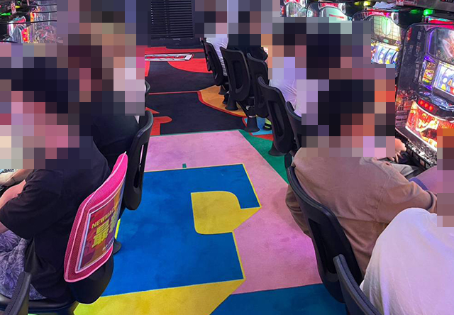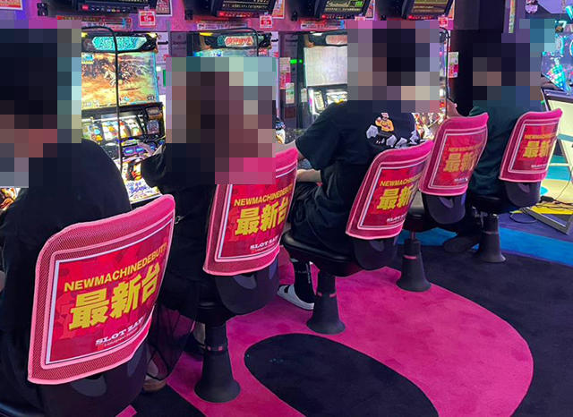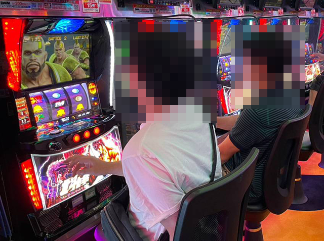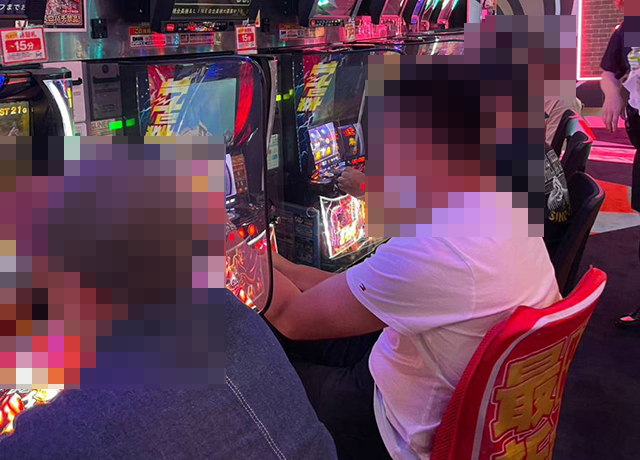 さまざまな機種が設置されたパチスロ専門店で調査を進めた。