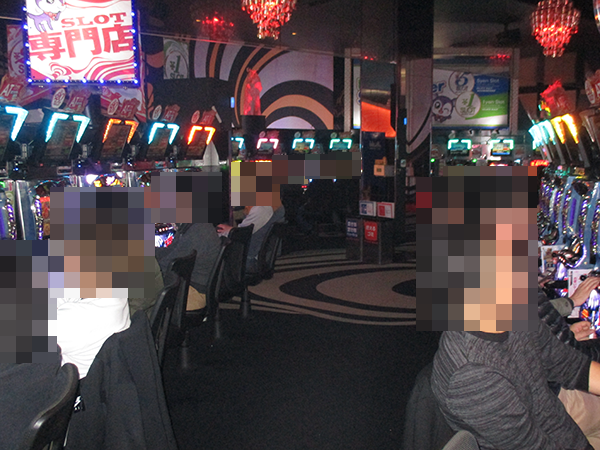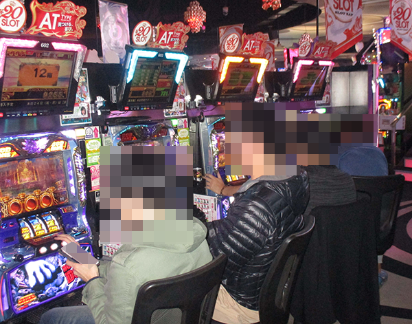 「アナザーゴッドハーデス」を筆頭に、にぎわっていた「スロットZAP竹尾店」。調査から日がたってもプレイヤーたちの輝くような笑顔を覚えている。
