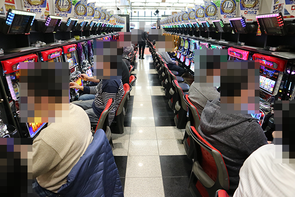 パチンコとパチスロがひとつのフロアに設置されているホールであり、店内を歩いていると、うれしそうに遊技をおこなっている姿が目に入った。