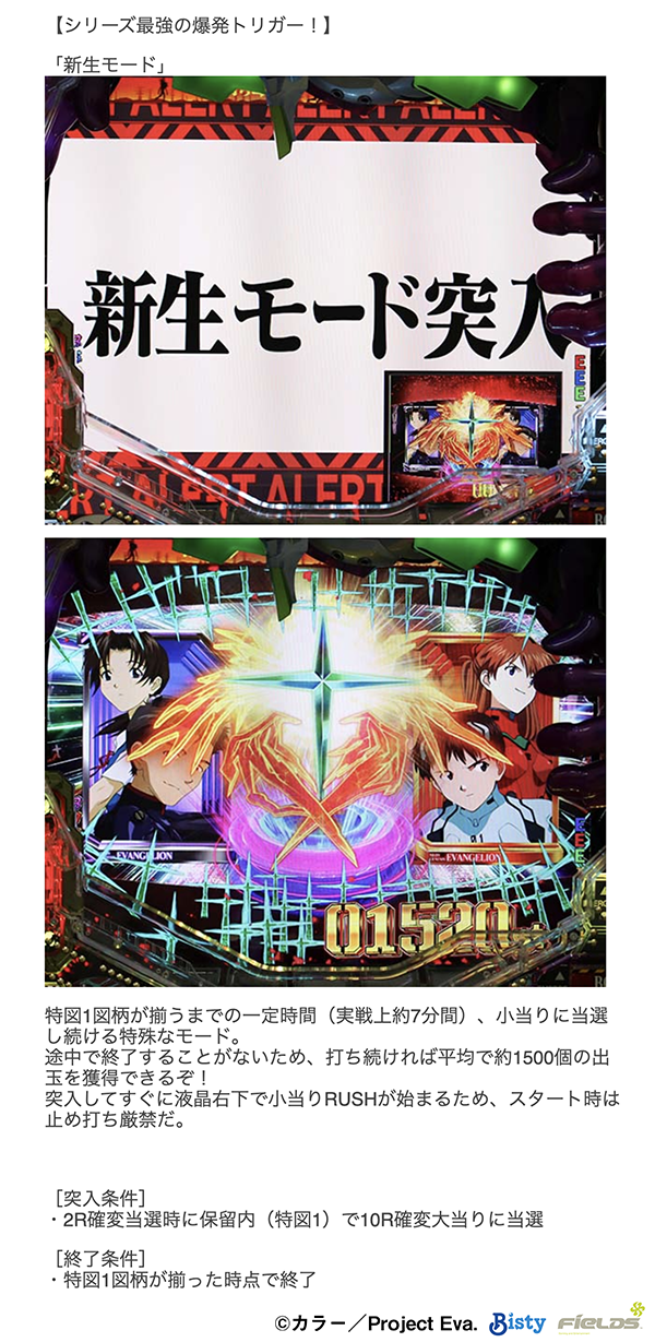 暴走モード開始時に保留内で10R確変に当選していれば、約7分間小当りRUSHが継続する新生モードに突入する。