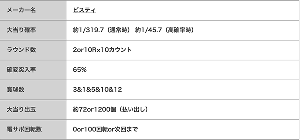 スペックは確変ループタイプで、2R確変後に突入する暴走モード中は小当りRUSHが発動する。
