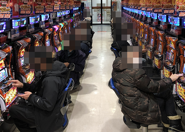 パチスロも含め、活気が大きかった「エヌワン万代店」。随所でみられたキラキラとした楽しげな表情が、遊技を満喫していることを物語っているように感じられた。