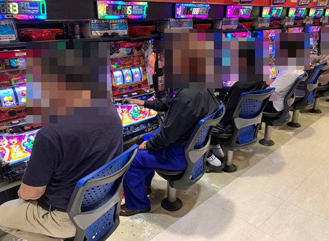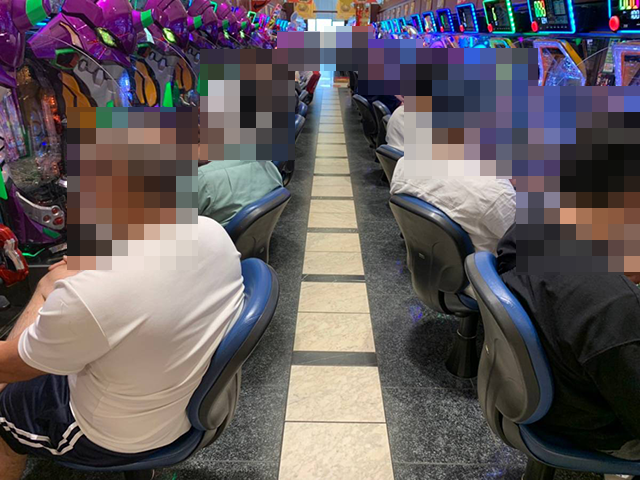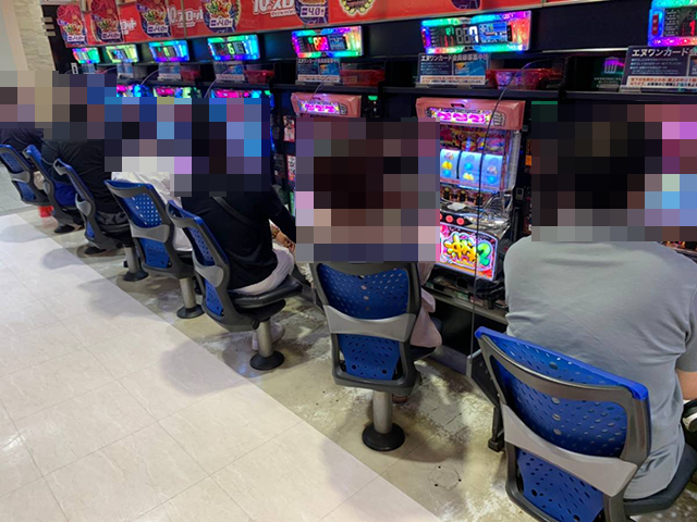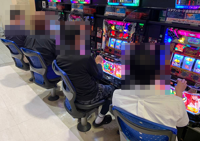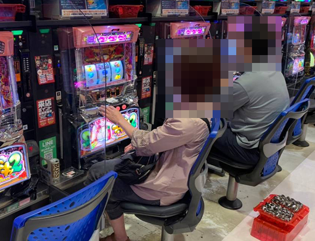 パチンコも含め、「エヌワン万代店」のあちこちで楽しげな姿をカメラにおさめた。