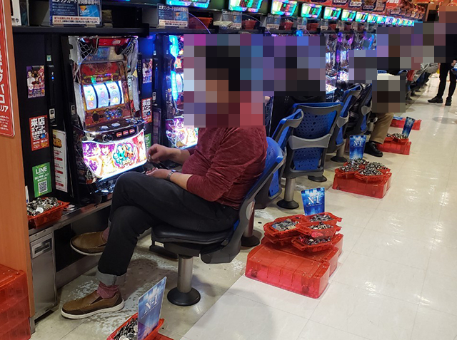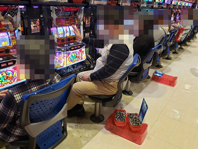遊技をおこなっているプレイヤーのほとんどが1箱以上の持ち玉で遊技をおこなっており、最大で7箱を確認。