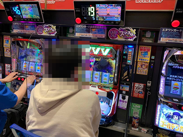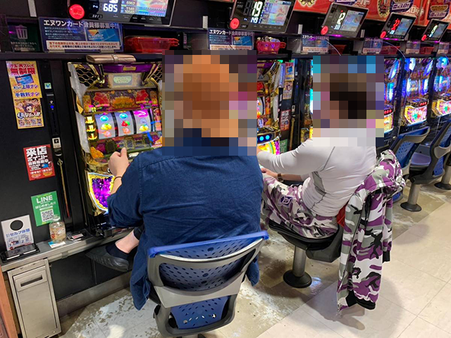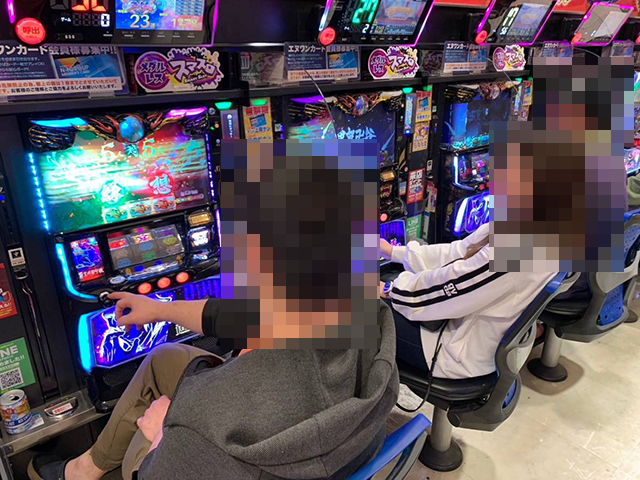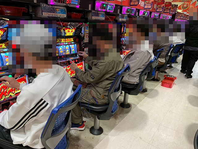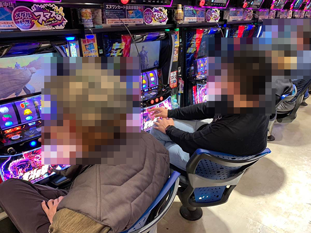 15時頃にパチスロをみてみると、「スマスロ北斗の拳」が満席かつ活況となっており、うれしそうに遊技をおこなうプレイヤーが並んでいた。