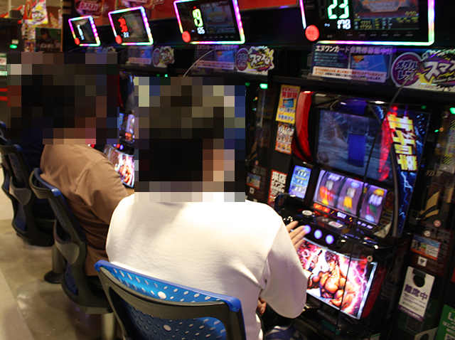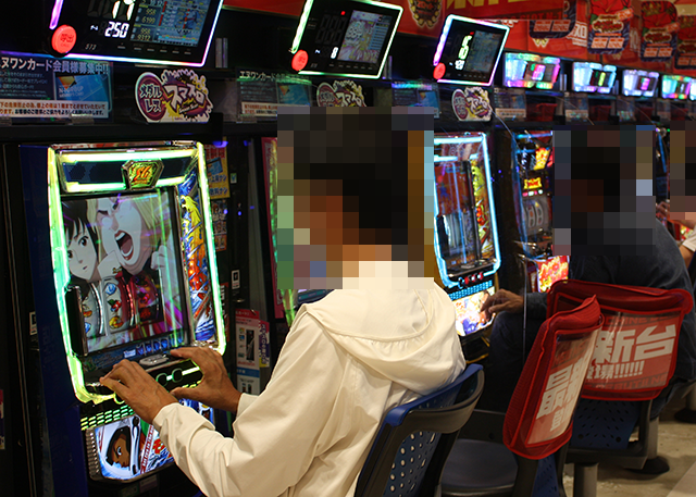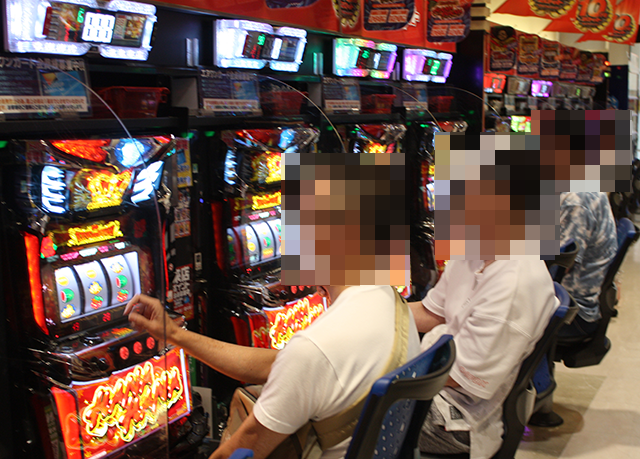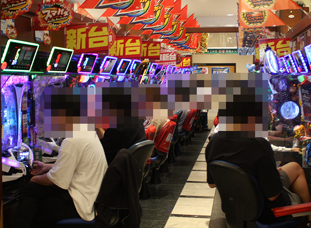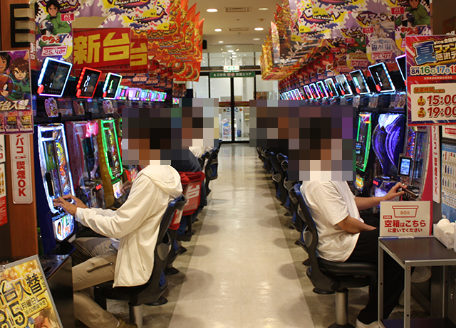 幅広い年代のプレイヤーが集まっている店内は、パチンコとパチスロの両方に、インパクトのある光景が広がっていた。