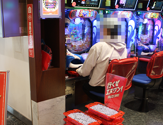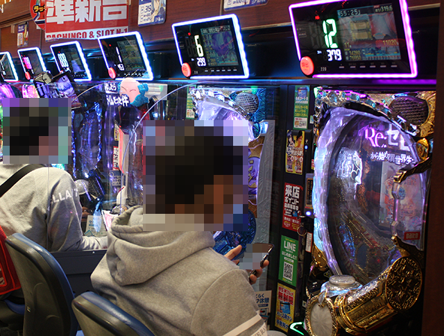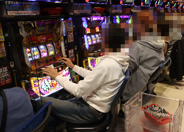 1名は3箱以上、もう1名12箱以上の持ち玉を使い、楽しそうに遊技をおこなっていた。