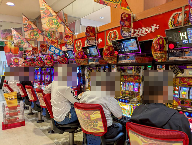 14時ごろのパチスロは、「スマスロモンキーターンV」や「L 東京喰種」に空き台がみあたらず、にぎやかな状況となっていた。