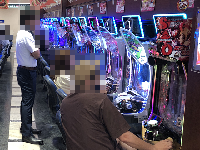 「P大海物語4スペシャルBLACK」でも、プレイヤーはうれしそうに遊技中。
