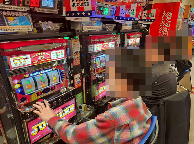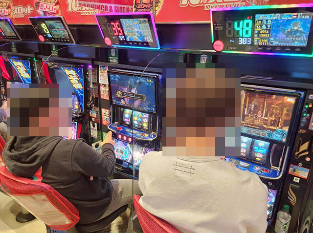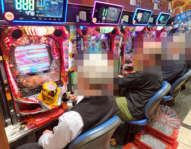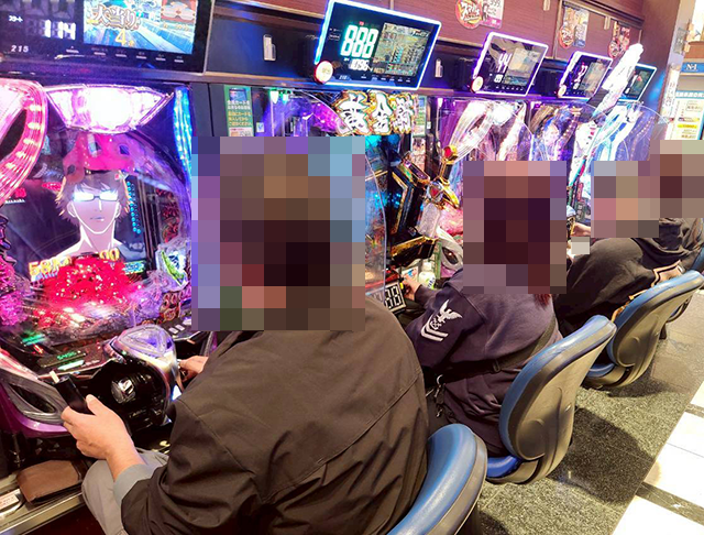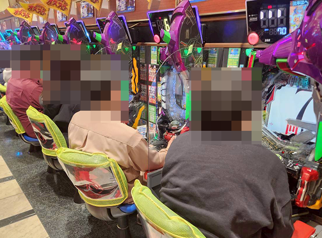 パチンコでは、2台設置の「e 東京喰種」に空き台がなく、どちらのプレイヤーも機種のおもしろさを味わえている様子。