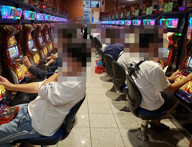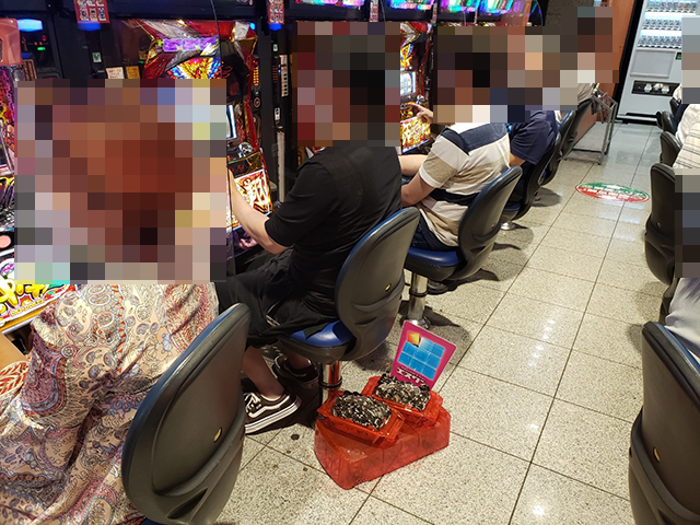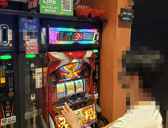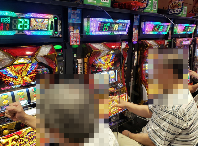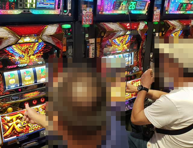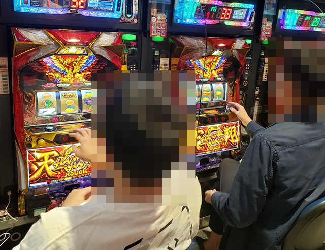 パチスロには3機種の沖スロで構成されているシマがあり、「ハナハナホウオウ~天翔~-30」は10台が設置されている。