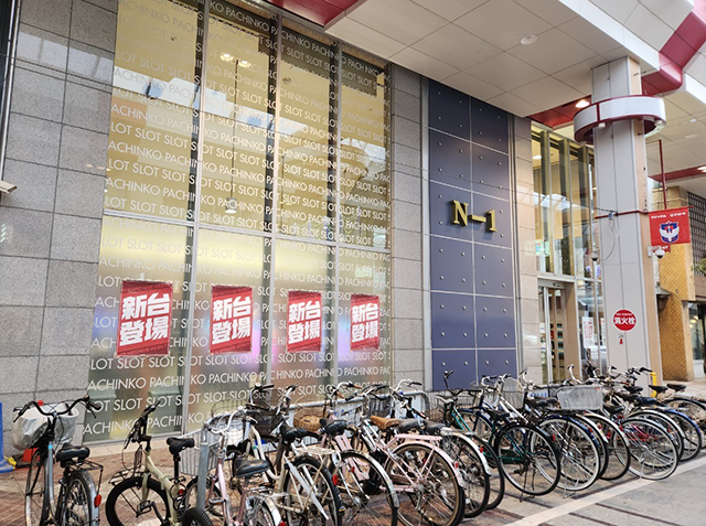 駐輪場にはたくさんの自転車がとめられており、近隣に住むプレイヤーからも支持されているホールだと感じた。