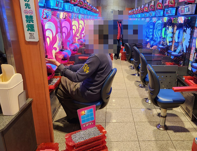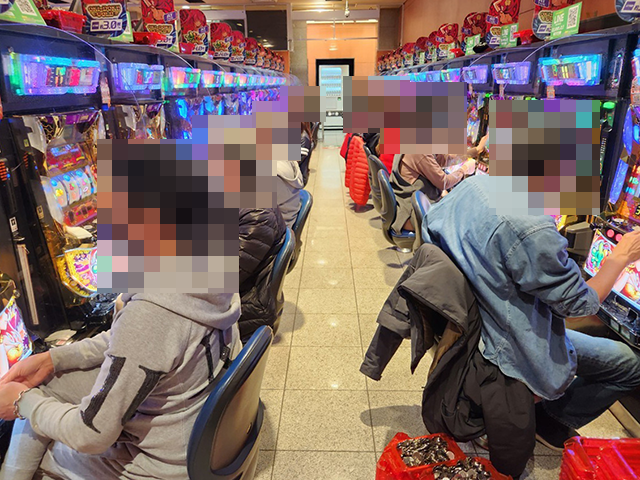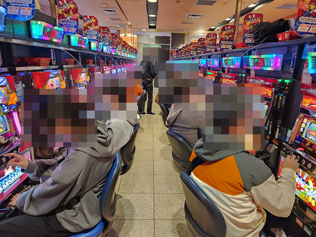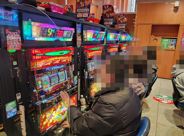 パチスロとパチンコの両方がにぎわっていた「エヌワン古町店」。機種を問わずに、遊技を満喫しているといった姿に出会えた。