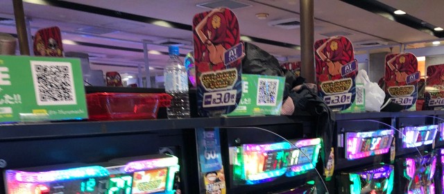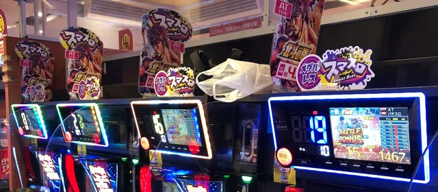 取材に訪れたのは午後の夕方目前。ジャグラーシリーズの『ハッピージャグラーVⅢ』『アイムジャグラーEX』の台上にはボーナス回数の多さと共にドル箱使用台が光った。