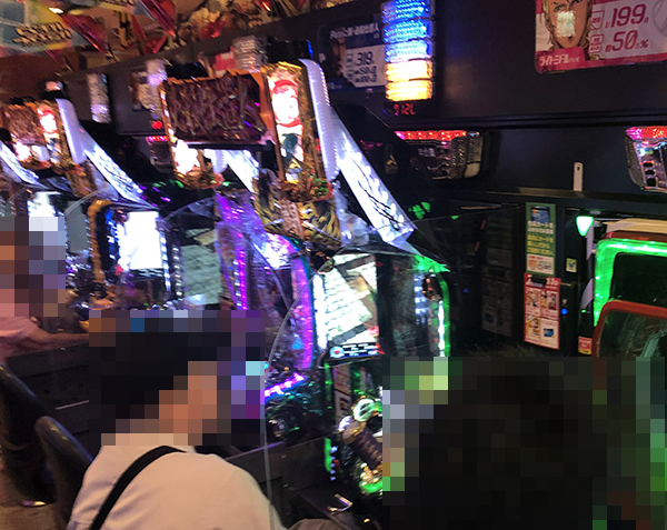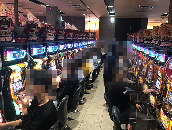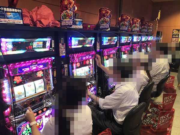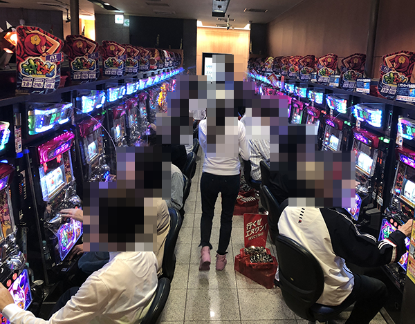 さまざまな機種が支持されており、パチスロ全体が楽しげなムード。
