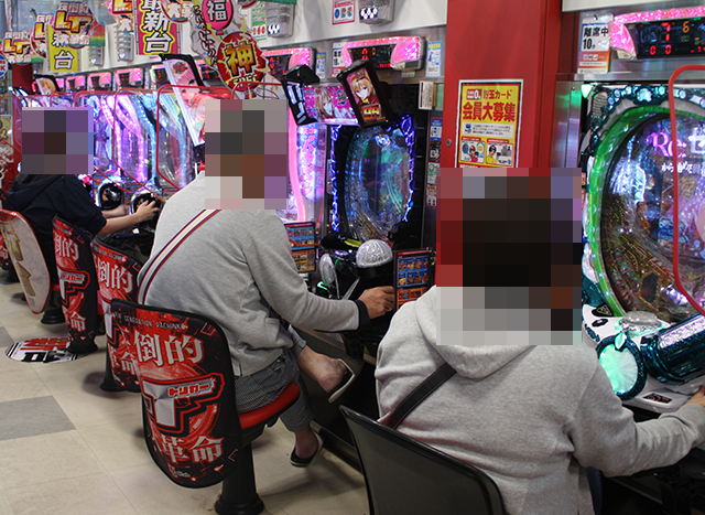 1箱以上の持ち玉を使い、笑顔で遊技をおこなっている姿があった。