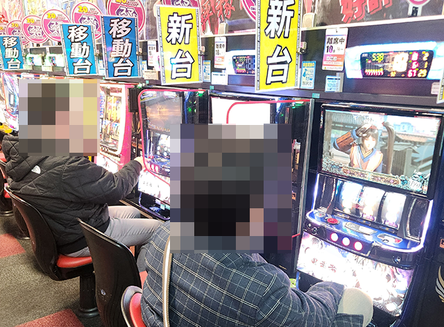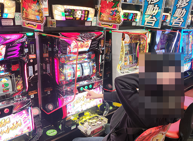 新台の「スマスロネオプラネット」でも、晴れやかな表情で遊技をおこなっている姿がみられた。