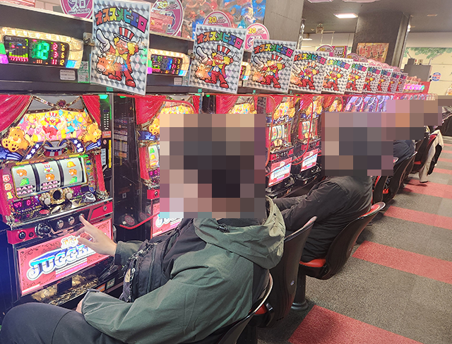 「マイジャグラーⅤ」と「ウルトラミラクルジャグラー」の両方に、明るい表情でレバーを叩いている姿があった。