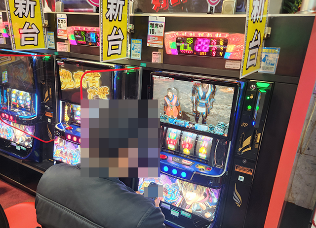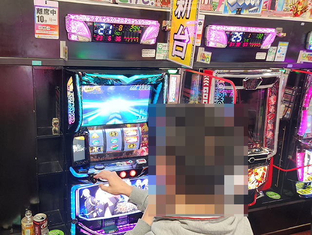 隣に設置された「スマスロ 新鬼武者3」にも、晴れやかな表情で遊技をおこなっている姿があった。