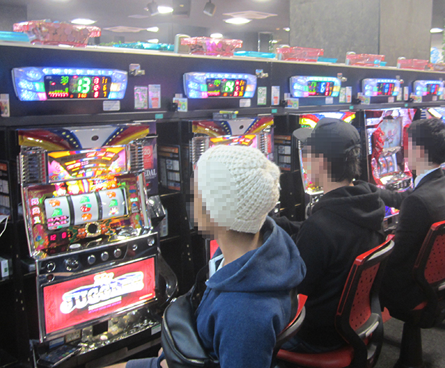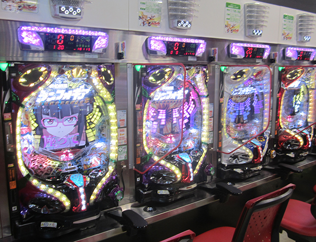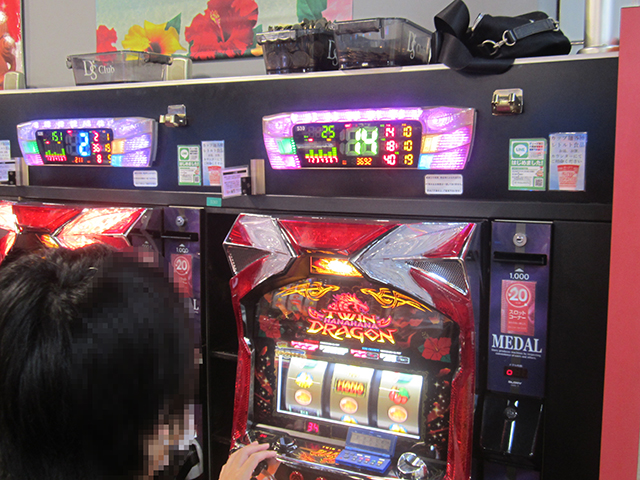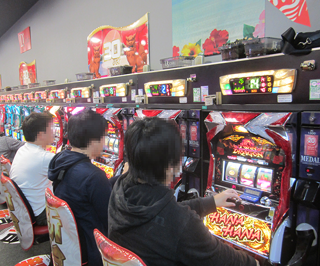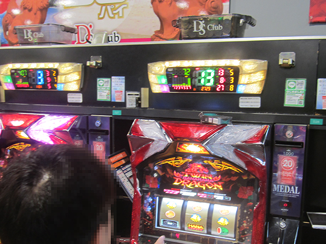導入間もない『ツインドラゴンハナハナ-30』は5台中4台にお客さんの姿が。