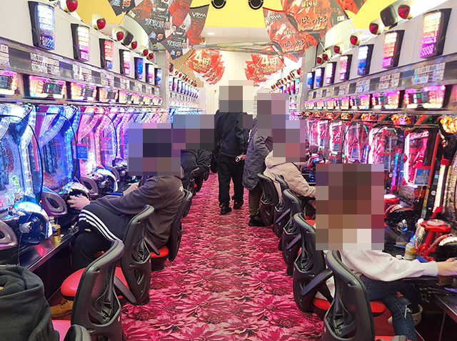 ホールには多くのプレイヤーが集まっており、パチンコとパチスロの両方がにぎわっていた。
