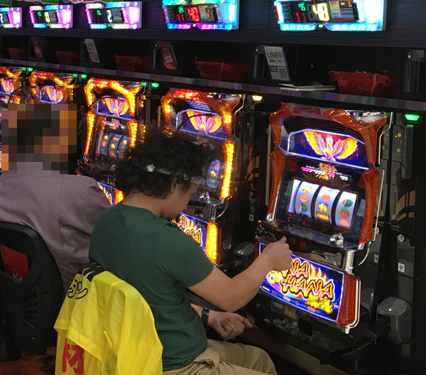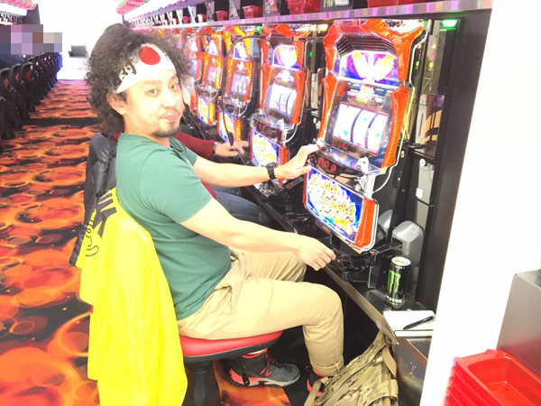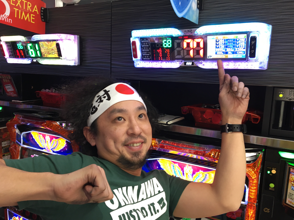 目的の機種でチャレンジを開始できたのはいいが、打ち慣れていない沖スロ特有のデカコインのせいか、4.1秒フルウエイトのブン回しのリズムが安定しないと、意味がわからないことを話すHIROMASAであった。