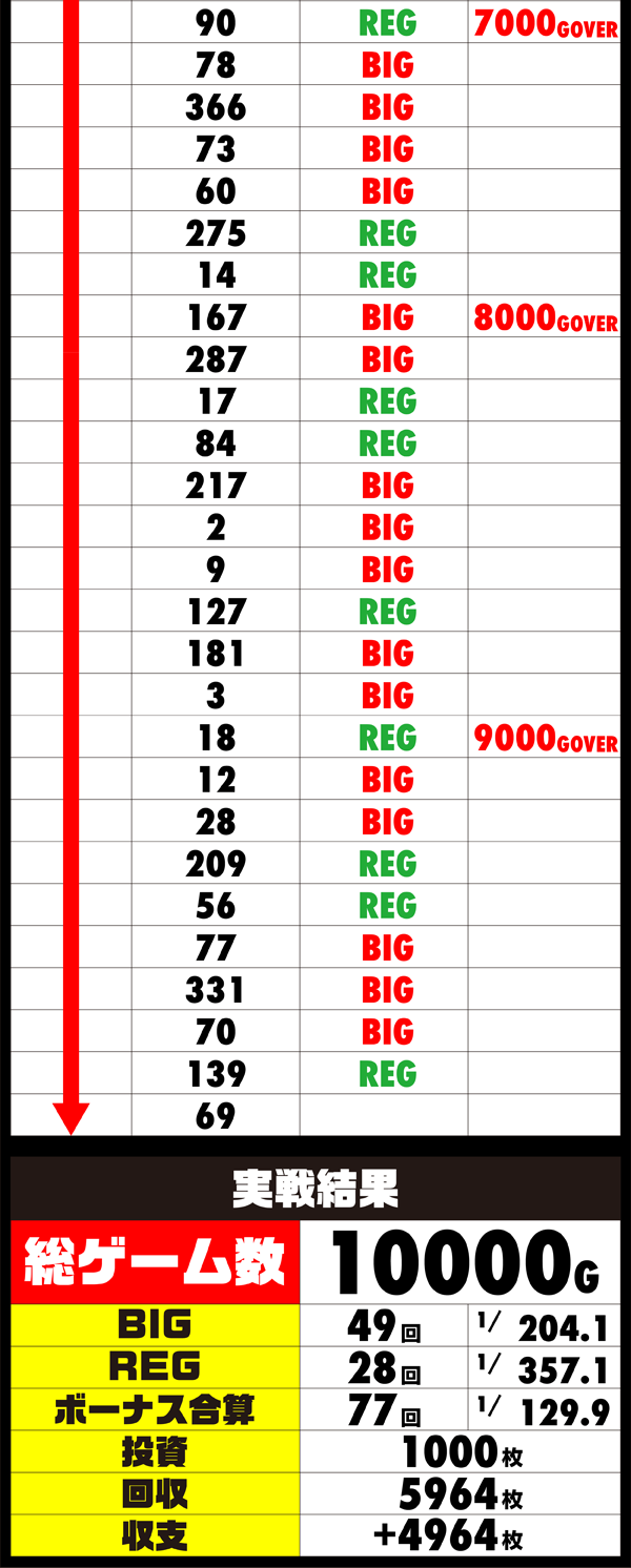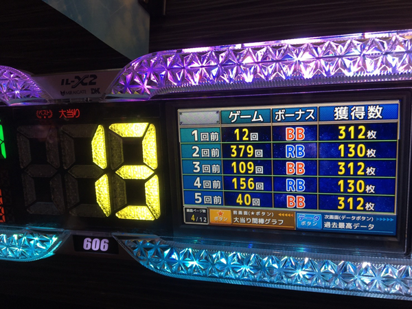 後半は台の挙動が一変し、どんどんボーナス回数を重ねはじめる。