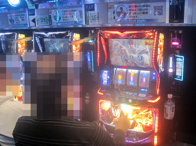 14時半ごろのパチスロでは、「スマスロ 北斗の拳 転生の章2」の稼働率が高く、にぎわいが感じられた。