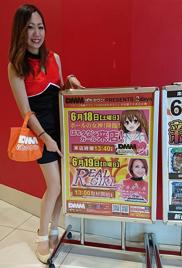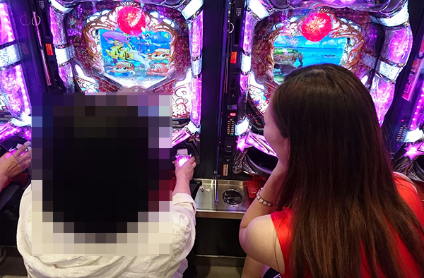 今回、まなちゃんが実戦に選んだ機種は、4円パチンコの「CRスーパー海物語IN沖縄3」と20円パチスロの「沖ドキ!」だ。