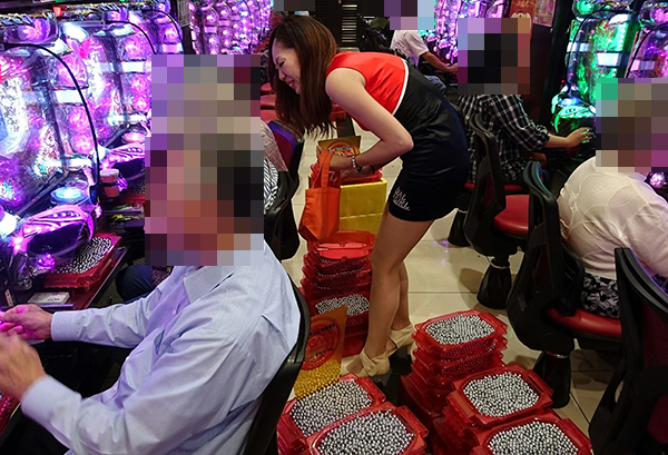1円と0.5円パチンココーナーも、たくさんの人でにぎわっていた。