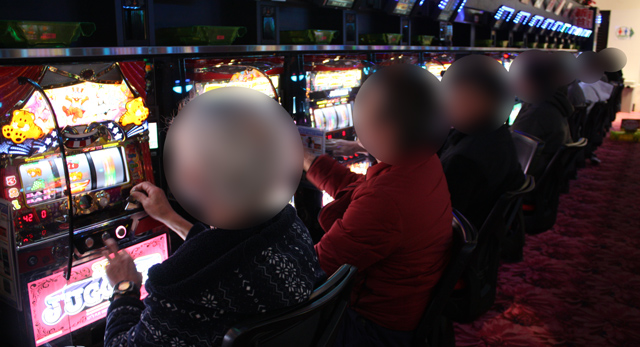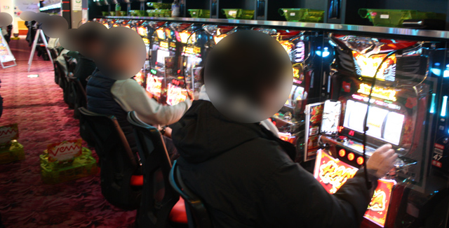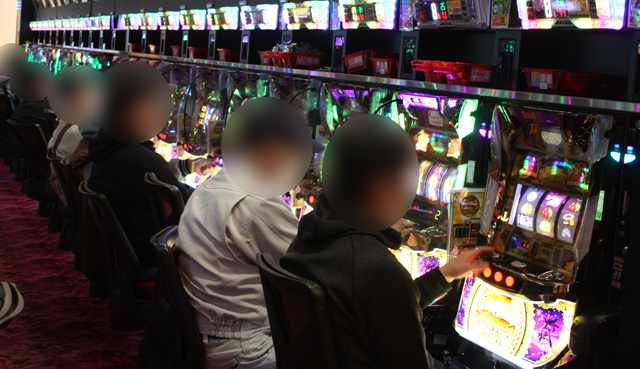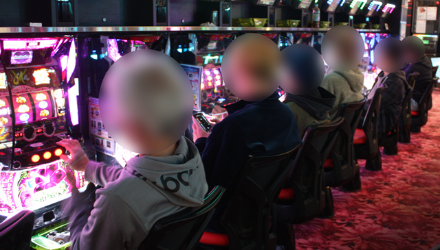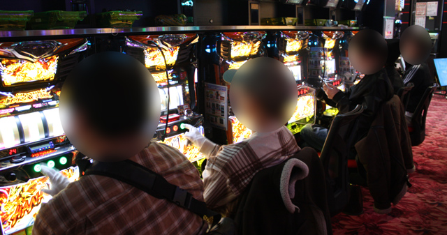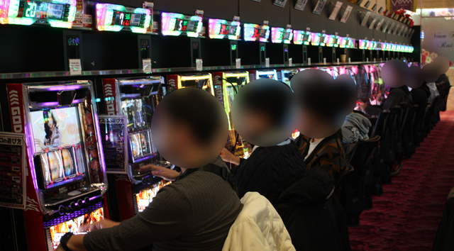 この日取材班が特に注目したのは、「ドラゴンハナハナ~閃光~ 30」や「キングハナハナ-30」などのハナハナシリーズと「沖ドキ!BLACK」などの沖スロシリーズのふたつ。取材時は常に高稼働状態をキープしており、上記写真の通りシマ全体で盛り上がる光景を確認することができた。遊技しているファンたちも存分に楽しんでいる様子で、同シリーズ達にかなりのチカラを入れていることが感じられた!