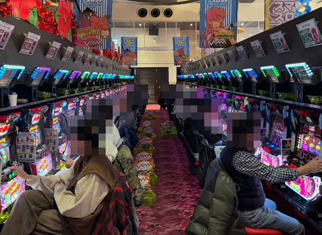 1箱以上の持ち玉を使い、うれしそうに遊技をおこなっているプレイヤーが並んでいた。