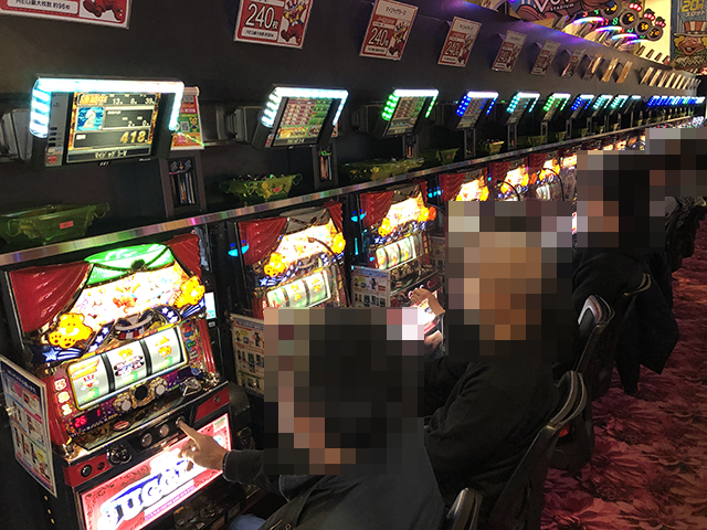 「マイジャグラーⅤ」も稼働率が高く、シマ内からはにぎわいが感じられた。