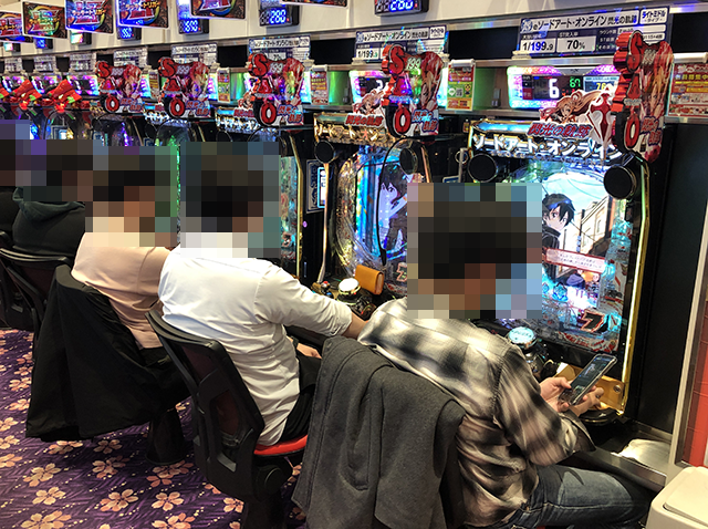 「スマートぱちんこ ソードアート・オンライン」や「eフィーバー戦姫絶唱シンフォギア4 キャロルver.」なども支持されており、プレイヤーたちは楽しそうに遊技をおこなっていた。