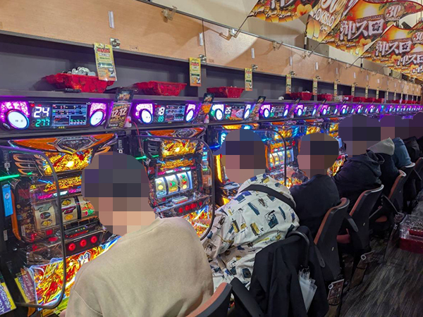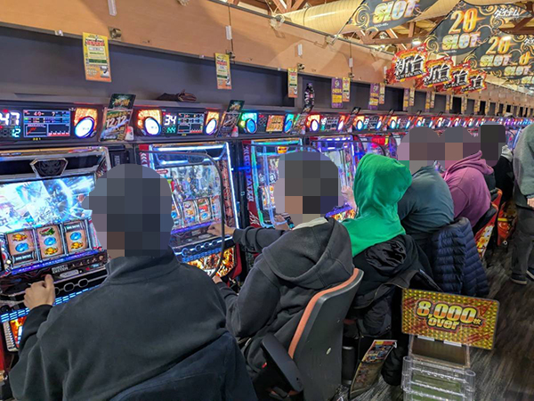 ほかにも「ドラゴンハナハナ~閃光~ 30」や「キングハナハナ-30」、「スマスロ モンスターハンターライズ」が活況。微笑ましいシーンをあちこちで確認している。