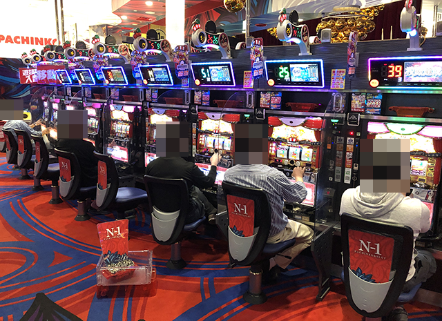 店内を進んでいくと、パチンコとパチスロの両方で活気のあるシーンを目にした。