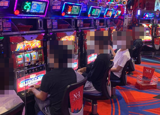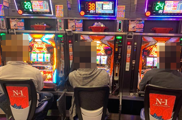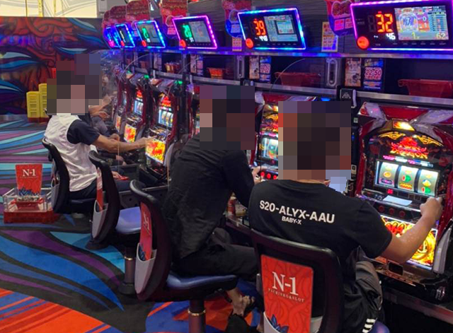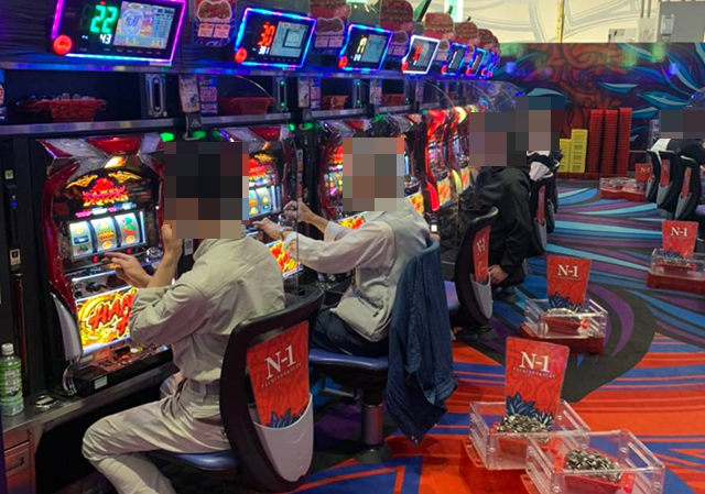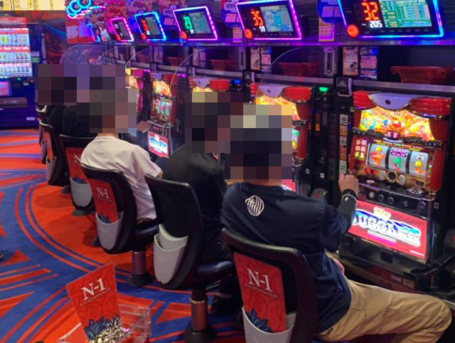 遊技を満喫しているようなプレイヤーが多く、にぎわうホール内でもひときわ存在感が大きい。