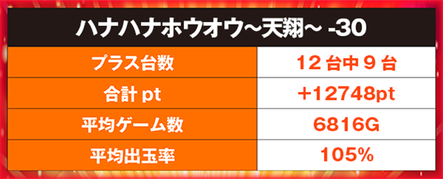 最終的にプラスを記録したのは、半数を上回る9台。合計ptは+12000ptを超え、平均ゲーム数は6816Gとなった。