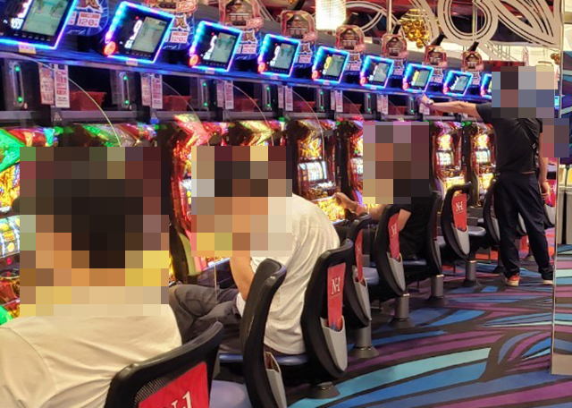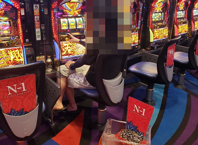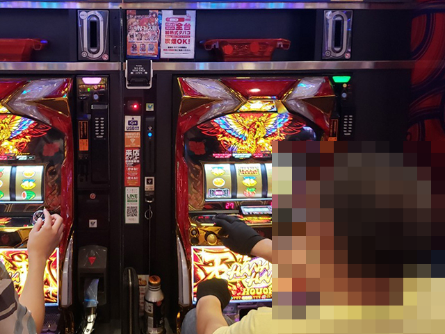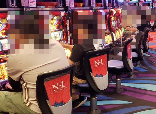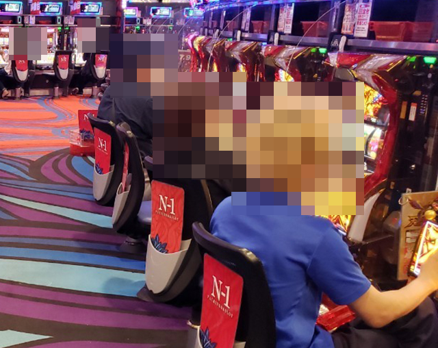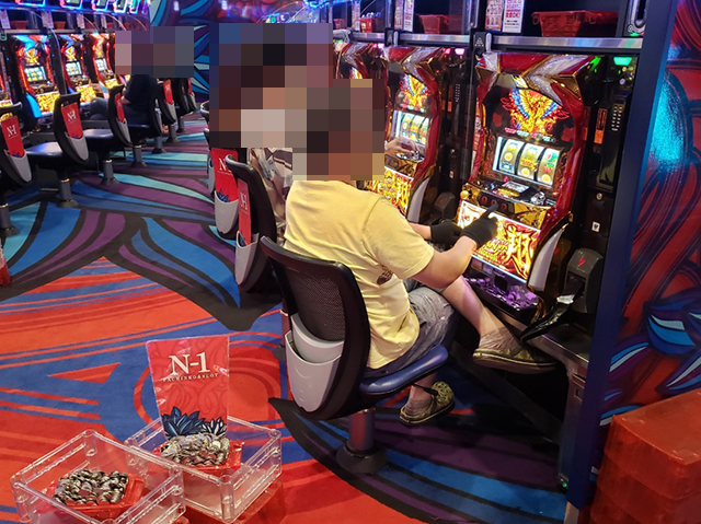 腰をすえて、じっくと遊技を楽しんでいるようなプレイヤーを確認。うれしそうにストップボタンを押している場面も印象に残っている。