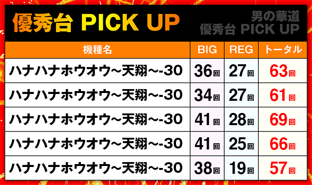 トータルで69回と66回を記録した台は、BIG回数が40回を超えた。