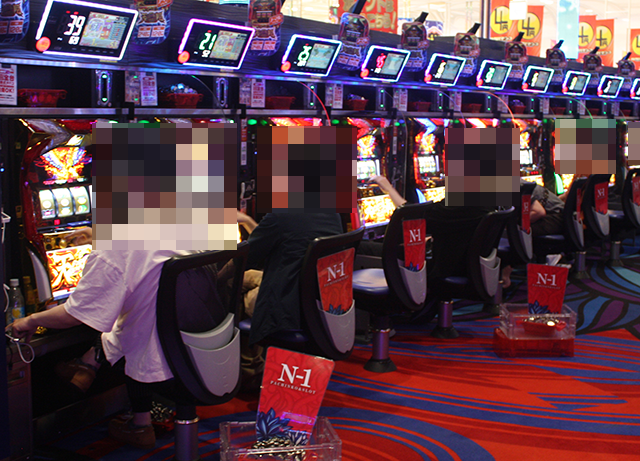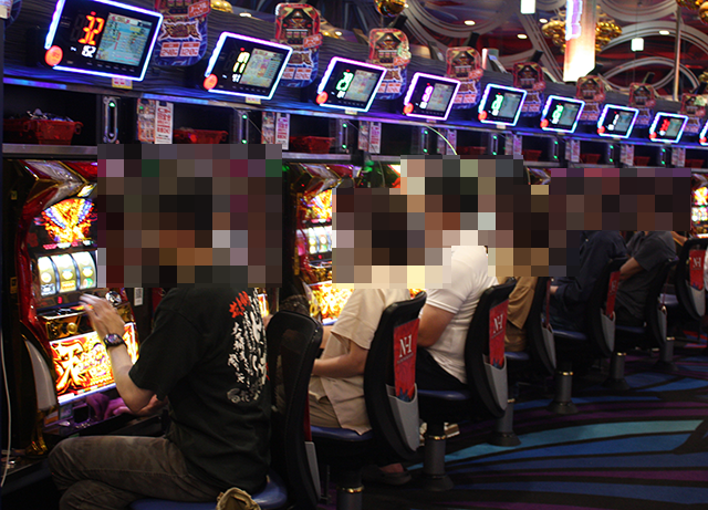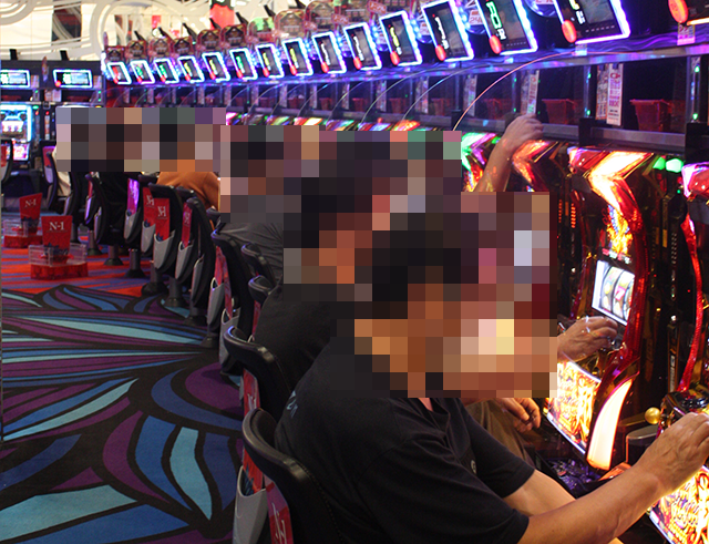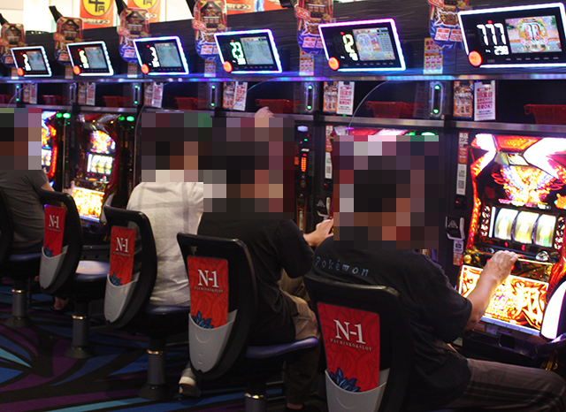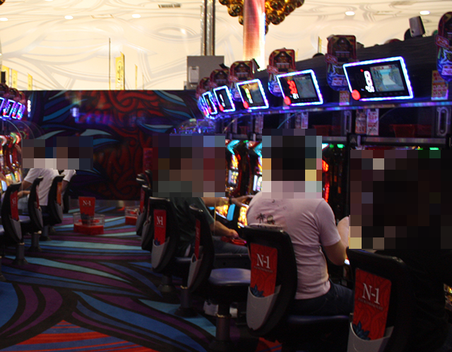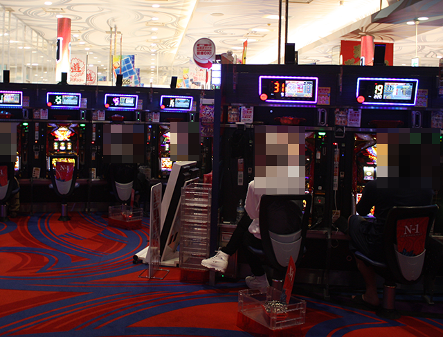 夕方頃の店内では、パチンコとパチスロの両方が盛況。さまざまな機種で、笑みを浮かべているプレイヤーを目にした。